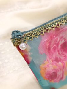 さて本日は爽やかな花柄のシースルーポーチをご紹介します